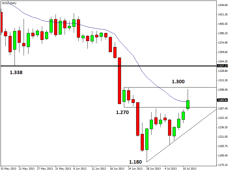A favorire la ripresa delle quotazioni del metallo giallo è stata la diffusione della minute della FED, che ha allontanato l’ipotesi di un aumento dei tassi di interesse, anche se il piano di stimoli monetari da 85 miliardi di dollari al mese potrebbe essere ridotto gradualmente nei prossimi mesi. C’è da sottolineare che il rialzo del metallo prezioso è stato anche favorito dal risveglio dell’inflazione in Cina e dai bassi prezzi toccati sul finire di giugno.