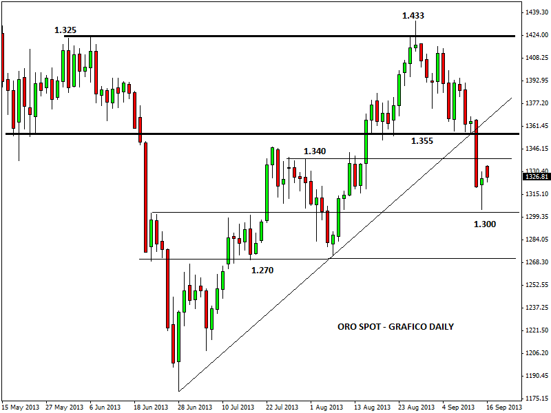 Nonostante i segnali di ripresa economica, non solo negli Stati Uniti ma anche in Cina e in Europa, le materie prime restano ancora al palo senza dare grandi indicazioni di risalita. Se si esclude il petrolio, più legato in questa fase all’andamento di fattori geo-politici, le altre commodity continuano ad evidenziare alti e bassi. Secondo gli esperti di Barclays, i miglioramenti dell’economia non si sono riflessi nei prezzi in quanto è stato già tutto o quasi scontato nelle quotazioni attuali. Tra i metalli resta sempre sotto i riflettori l’oro, che negli ultimi tempi sembrava poter riconquistare lo status di bene rifugio, a seguito dell’aumento dei timori per un conflitto tra Stati Uniti e Siria. Tuttavia, l’allentamento delle tensioni in Medio Oriente ha decretato un deciso sell-off dei prezzi.
