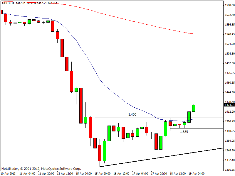 Il superamento della solida resistenza di area 1.400 dollari ha finora spinto i prezzi fino a 1.425 dollari. La prima resistenza era posta proprio a 1.425 dollari, ma la sensazione è che il rialzo possa continuare ancora fino a 1.435 dollari prima e 1.450 dollari poi. Nei prossimi giorni, però, dopo questo rimbalzo tecnico, potrebbe ripristinarsi il trend ribassista di fondo, in particolare se i prezzi dovessero tornare bruscamente sotto 1.400 dollari. Tre giorni fa l’oro era crollato a 1.321 dollari, sui minimi più bassi da dicembre 2011.