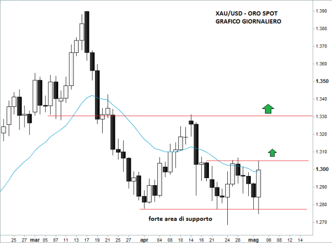 Quest’anno i prezzi sono riusciti a rimbalzare con decisione da area 1.180$ - 1.200$, mettendo a punto un rally notevole fino a 1.390$ l’oncia nonostante i report negativi delle grandi banche d’affari internazionali. Nella migliore delle ipotesi, ancora oggi diverse case di investimento si aspettano un ulteriore calo del 15% da qui a fine anno: Société Générale continua a ribadire il suo target di 1.100$, Goldman Sachs di 1.050$, mentre Barclays ha annunciato di attendersi un prezzo più stabile intorno a 1.250$ nel secondo trimestre dell’anno in corso. Praticamente nessuno dei big della finanza mondiale è pronto a scommettere sul rilancio dell’oro. Eppure tecnicamente il metallo prezioso inizia a mostrare uno scenario potenzialmente molto positivo.