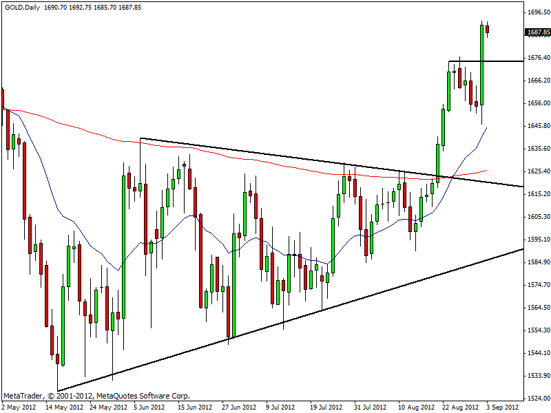 Il mercato dell’oro è tornato a infiammarsi dopo lee recenti dichiarazioni di Ben Bernanke, numero uno della FED, sulla possibilità di aprire nuovamente i rubinetti della liquidità varando il terzo piano di quantitative easing. Quando emergono con forza le aspettative di shock sull’offerta di moneta, l’oro trova vita facile e si apprezza con decisione.