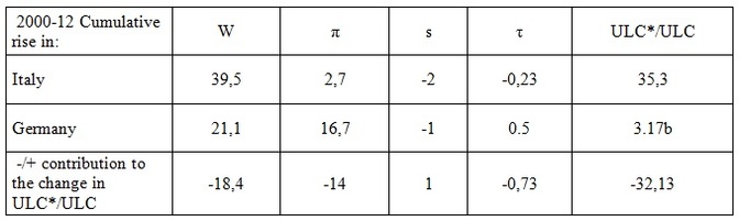 La tabella 1 riassume il contributo di questi diversi fattori per la perdita di competitività in Italia.