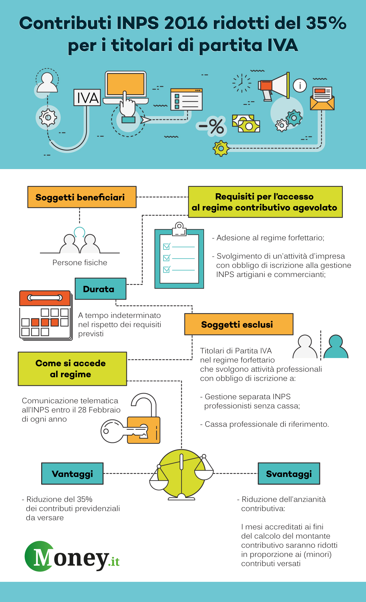 Chi può beneficiare del regime contributivo INPS agevolato per i titolari di partita IVA nel regime forfettario 2016? Ecco un’utile infografica con tutto quello che c’è da sapere.