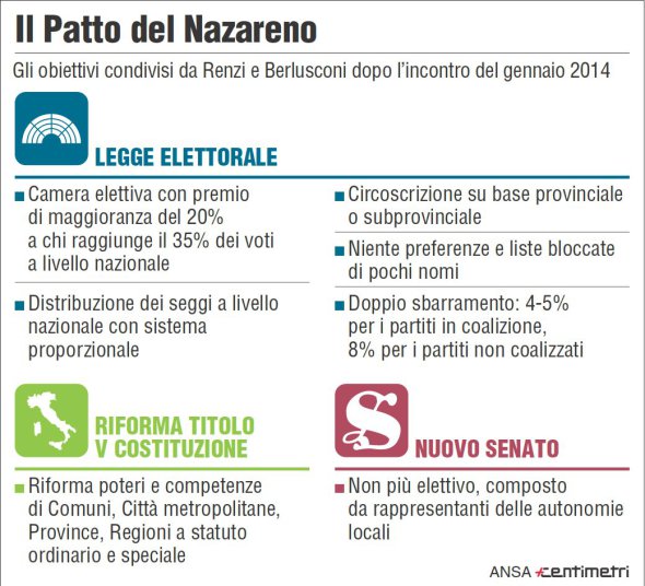 - molti definiscono Renzi per Berlusconi un’assicurazione sulla vita: grazie al Patto del Nazareno Berlusconi&Co. hanno potuto inserirsi nel processo decisionale come attori e non spettatori;