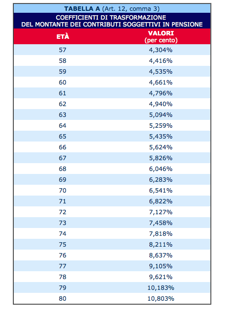 La pensione di vecchiaia si determina moltiplicando il montante individuale per il coefficiente di trasformazione relativo all’età dell’iscritto al momento del pensionamento