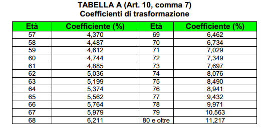 Il montante contributivo individuale è moltiplicato per il coefficiente di trasformazione.