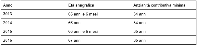 - 2 mesi per coloro che maturano i requisiti nel 2013;