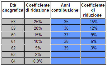 Alle pensioni di anzianità liquidate prima della maturazione di 40 anni di contributi vengono applicate le seguenti riduzioni: