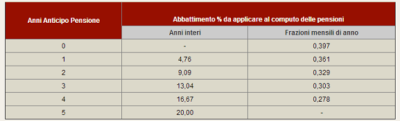 - i giornalisti possono accedere alla pensione d’anzianità con i requisiti d’età in vigore anteriormente al 1° gennaio 2008, con l’applicazione delle seguenti percentuali d’abbattimento.