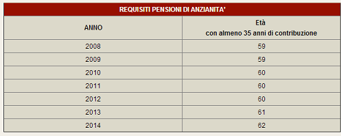 - a decorrere dal 1° gennaio 2008 i requisiti per accedere alla pensione d’anzianità con una posizione contributiva inferiore ai 40 anni sono quelli risultanti dalla tabella che segue: