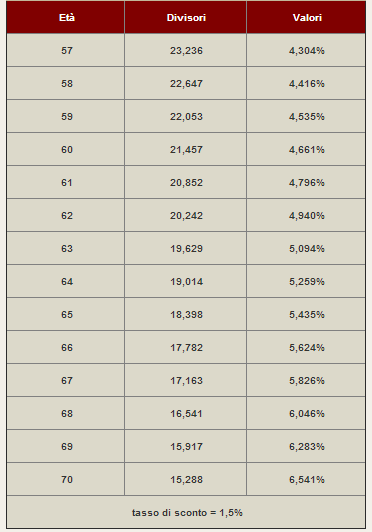 Dal 1 gennaio 2013 i coefficienti di trasformazione sono: