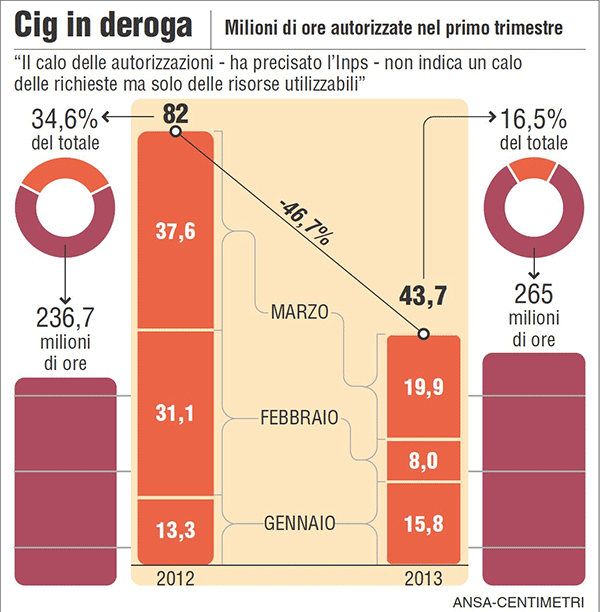 Guardate i dati INPS sulla Cig in deroga nel primo trimestre 2012-2013.