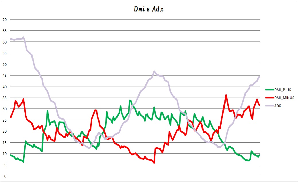 L’analisi del DMI indica infatti un possibile inizio di restringimento della divergenza, ma ancora non vi sono indicazioni di cambio da parte dell’ADX che permane su livelli elevati di 44.