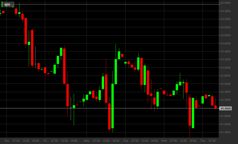 Nelle prime ore di negoziazione di giovedì il WTI viene scambiato a 42,11 dollari in rialzo dello 0,35%, dopo il dato di ieri che ha mostrato le scorte petrolifere negli USA aumentare meno delle aspettative (252.000 barili contro gli 1,9 milioni previsti dagli analisti).