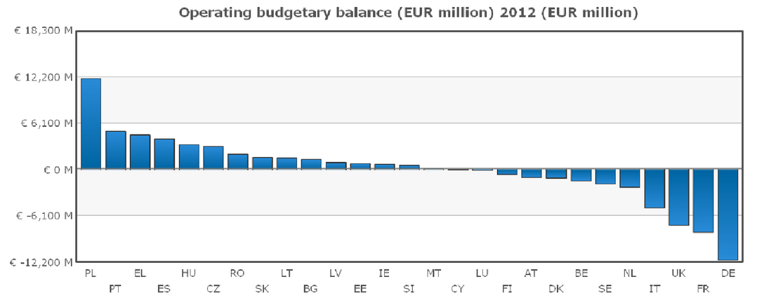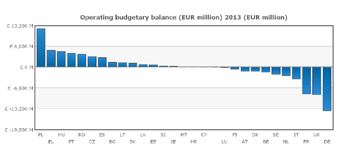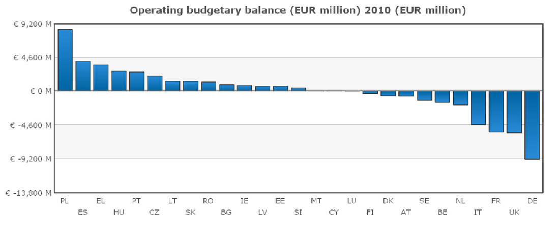 visto che le maggiori economie dell’Ue (Germania, Francia, Italia, Inghilterra, etc…) sono contribuenti netti al bilancio UE (vedi grafici sottostanti) per cui, per tali Paesi i fondi del bilancio dell’Ue non rappresentano un sostegno alle loro finanze (anzi è per loro un drenaggio di risorse);