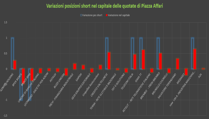 Rispetto alla settimana del 20 luglio inoltre non sono presenti Banca Mediolanum, Società Sportiva Lazio, Mondo TV ed Eurotech, mentre la new entry è la società I.M.A. che esordisce nell’elenco con 1 posizione netta corta per una percentuale sul capitale pari allo 0,63%.