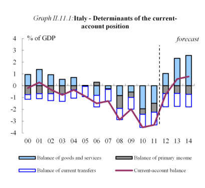 La bilancia dei pagamenti continua a migliorare sull’orizzonte delle previsioni e nel 2013 la bilancia commerciale dovrebbe tornare al surplus per la prima volta dal 2001.
