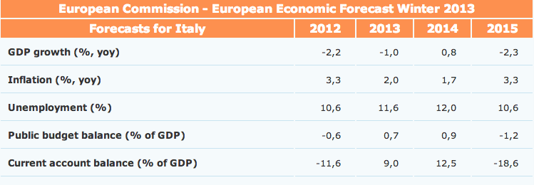 Traduciamo le Winter Forecasts 2013 per l’Italia, rilasciate oggi dalla Commissione Europea.