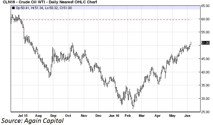 I futures sul West Texas Intermediate, come anticipato, si mantiene ben al di sopra dei 51 dollari al barile - un livello che sul prezzo del petrolio non si vedeva da luglio 2015. Il prezzo del petrolio sta ricevendo sostegno dalla debolezza del dollaro, il rallentamento della produzione e dai dati del governo USA che hanno mostrato al mercato un calo delle scorte di petrolio interne al Paese al di sopra delle attese degli analisti.