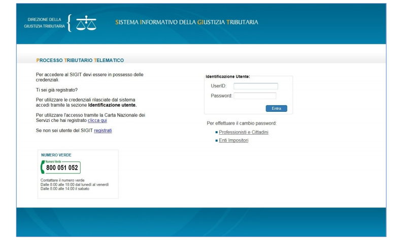 Alla fine del processo di registrazione potrete accedere alle funzionalità del PTT (deposito atti e consultazione fascicolo) al PTT e al Telecontenzioso. Per accedere dovrete inserire l’UserID (coincidente con il codice fiscale del soggetto abilitato) e la password.