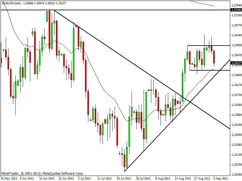 La quotazione del tasso di cambio euro/dollaro è sceso questa mattina a 1,2501, avvicinandosi così a importanti supporti di breve periodo posto a 1,2485 prima e 1,2465 poi. I prezzi restano ingabbiati all’interno del trading range, che su base daily è presente da alcuni giorni.