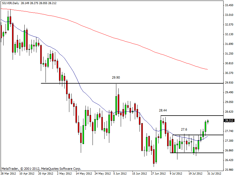 Sta rialzando la testa anche l’argento, che è tornato sopra 28$ l’oncia. Il metallo grigio è vicino al primo target di area 28,5$, approdo naturale dopo il breakout della fase laterale compresa tra 27,6 e 26,6 dollari. In caso di breakout di 28,5$, il target successivo è posto in area 29,9 - 30 dollari l’oncia.