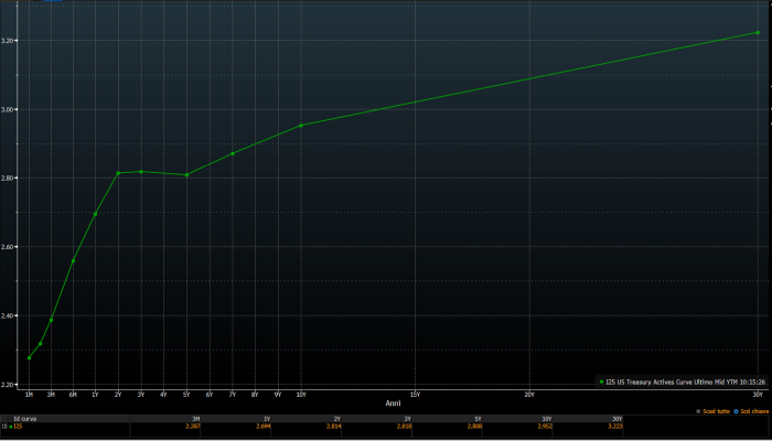 Curva dei tassi statunitense. Fonte: Bloomberg