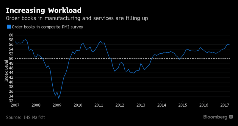 La crescita della domanda derivante dalla ripresa dei consumi è un elemento che gioca a tutto favore delle imprese. Ad aprile lo slancio nel settore manifatturiero e in quello dei servizi dell’Eurozona è stato ancor più evidente ed è cresciuto al ritmo più veloce mai registrato negli ultimi 6 anni. Questo perché le aziende hanno migliorato la loro capacità di incontrare la domanda dei consumatori, secondo alcuni dati preliminari raccolti da IHS Markit.