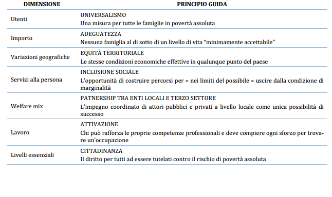In tal senso la proposta parla di un’infrastruttura nazionale per il welfare locale, visto il coordinamento tra Stato, Regioni, Comuni, Centri per l’Impiego, che dovranno mettere in campo precisi principi guida.