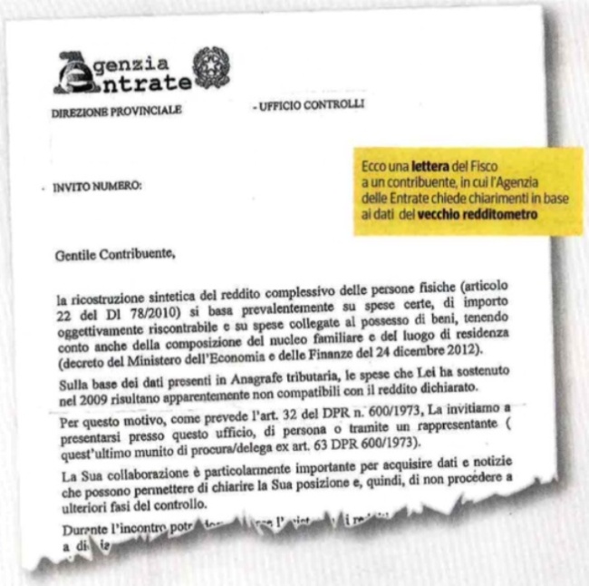 E’ lo strumento messo a punto dall’Agenzia delle Entrate per scovare i casi in cui il reddito dichiarato sembra essere incongruo rispetto alle spese sostenute. Con il Redditometro infatti il Fisco è in grado di calcolare la compatibilità tra tenore di vita e reddito ufficiale: quando lo scostamento dei due parametri è superiore al 20 per cento scatta l’allarme, e l’Agenzia delle Entrate invia una raccomandata in cui si invita il contribuente a un incontro per spiegare le ragioni di tale scostamento.