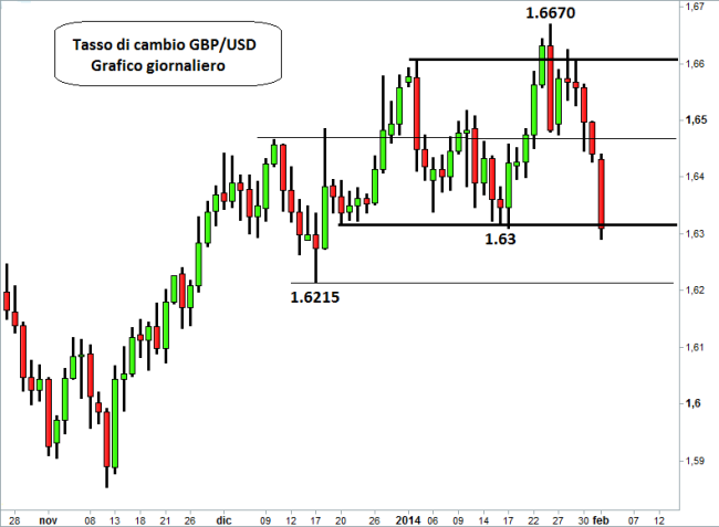 Dopo un ottimo inizio d’anno la sterlina sta rallentando sempre più la sua corsa rialzista, a causa di dati macroeconomici nel Regno Unito inferiori alle aspettative. Ieri è toccato all’indice PMI manifatturiero, elaborato da Markit, relativo al mese di gennaio, che è sceso a 56,7 punti dai 57,2 punti del mese precedente (dato rivisto al ribasso da 57,3 punti). Il mercato si aspettava un dato pressoché invariato, ma alla fine è rimasto deluso.