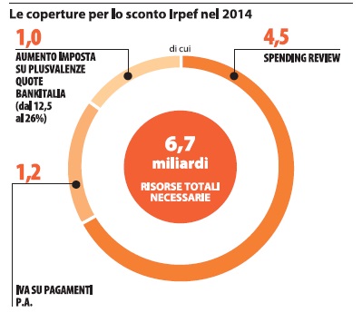 Per il 2014 ci sarà bisogno di 6,7 miliardi di euro. Il tutto è sintetizzato graficamente nella seguente immagine.