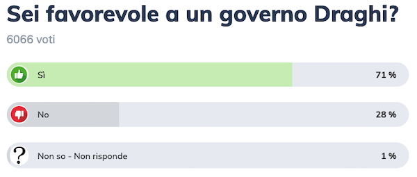 Risultati sondaggio: plebiscito per Draghi, un suo governo piace al 71% dei lettori