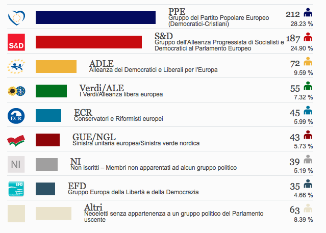 I risultati che arrivano da Bruxelles, non sono ancora quelli ufficiali, ma a questo punto davvero poco ci manca. La disposizione delle forze in campo si è già delineata chiaramente: il PPE ha vinto le elezioni europee 2014.