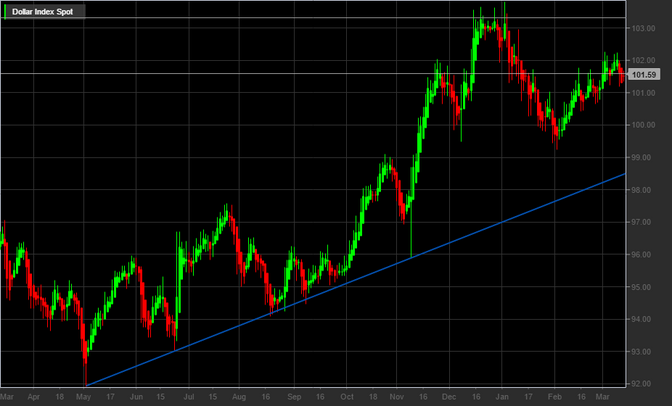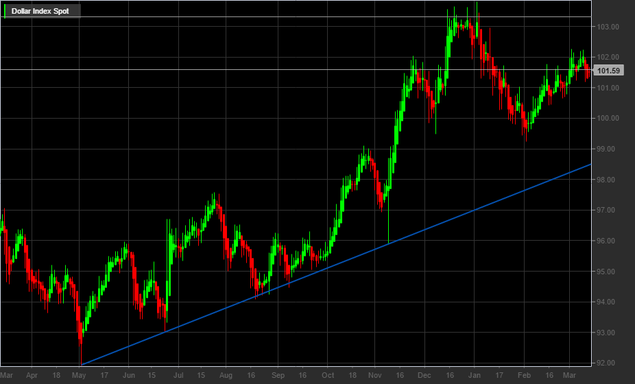 La riunione Fed porta con sé il primo rialzo dei tassi di interesse della banca centrale degli Stati Uniti, che prevede ancora di ritoccare il tasso per un totale di tre volte nel corso del 2017. Il mercato è deluso e corre a svendere il dollaro.