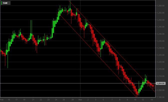 Il prezzo dell’oro sono salendo in un movimento di inversione del canale ribassita: