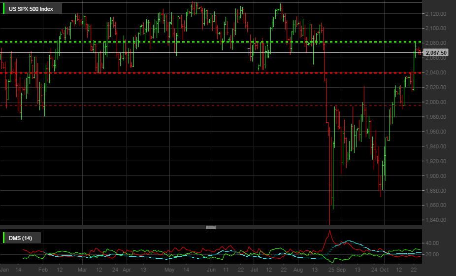 Ora che l’indice statunitense S&P 500 è arrivato a ridosso della resistenza a 2080, la corsa sembra essersi arrestata e sembra evidente che l’indice americano abbia bisogno di un ritracciamento per poter rifiatare.