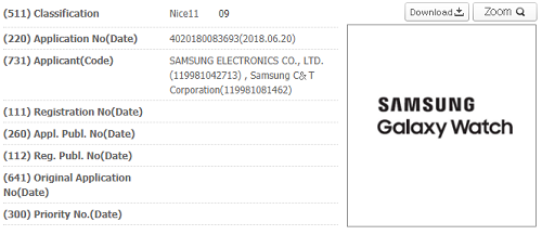 L’indiscrezione più affidabile sul nuovo nome del dispositivo proviene da SamMobile: il sito ha infatti segnalato un registro coreano dei marchi commerciali dove compare il logo per un Samsung Galaxy Watch richiesto da Samsung Electronics Co., Ltd.