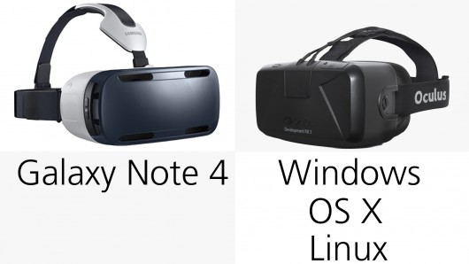 Come avrete già intuito, facendo affidamento a uno smartphone il Samsung Gear VR avrà il vantaggio di essere wireless, mentre Oculus Rift andrà collegato al PC e alla rete alla vecchia maniera con tutti i cavi del caso. Il Galaxy Note 4 si inserirà in un hub micro USB all’interno del visore Gear VR, mentre Oculus Rift utilizzerà una connessione USB tramite cavi HDMI (o DVI-D).