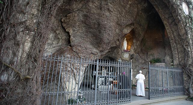 Dagli atti della commissione Diocesana incaricata di esaminare i fatti, sappiamo che quel giorno Bernadette era a cercare legna sulle sponde del fiume Gave, non lontano dal sobborgo di Massabielle. In quel momento scorse in una grotta la Madonna con l’aspetto di una “bella Signora” dall’abito bianco, la cinta azzurra e una rosa gialla sui piedi.