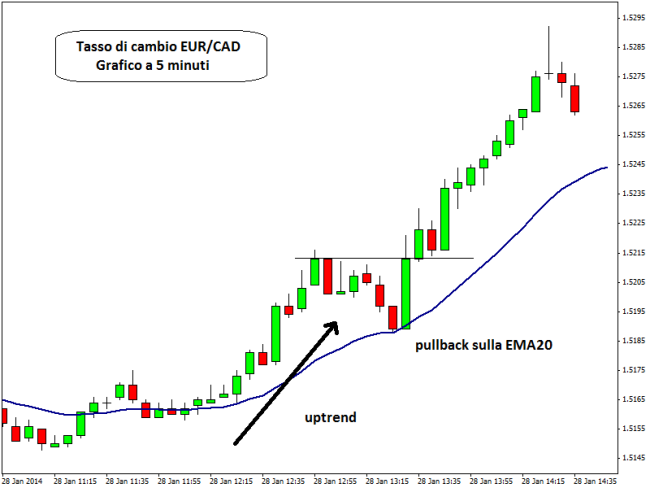 Scalping con il pullback sulla EMA20 su EUR/CAD