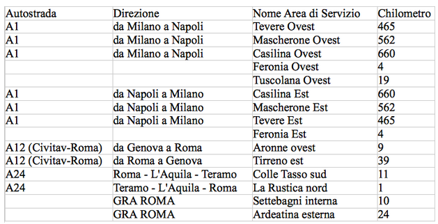 Sul sito della conferenza delle Regioni e delle province autonome è stato inserito l’elenco delle aree di servizio che rimarranno aperte in ogni Regione. “In occasione dello sciopero sarà applicata infatti la turnazione prevista dalla Tabella B”. Questa che segue è la turnazione prevista per il Lazio: