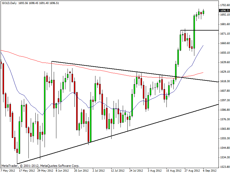Pronto a entrare long in caso di breakout di 1.700 dollari l’oncia. E’ il mercato che mostra uno dei trend più forti in questo momento, anche se sarà lo stesso influenzato dalla decisione della Bce di quest’oggi.