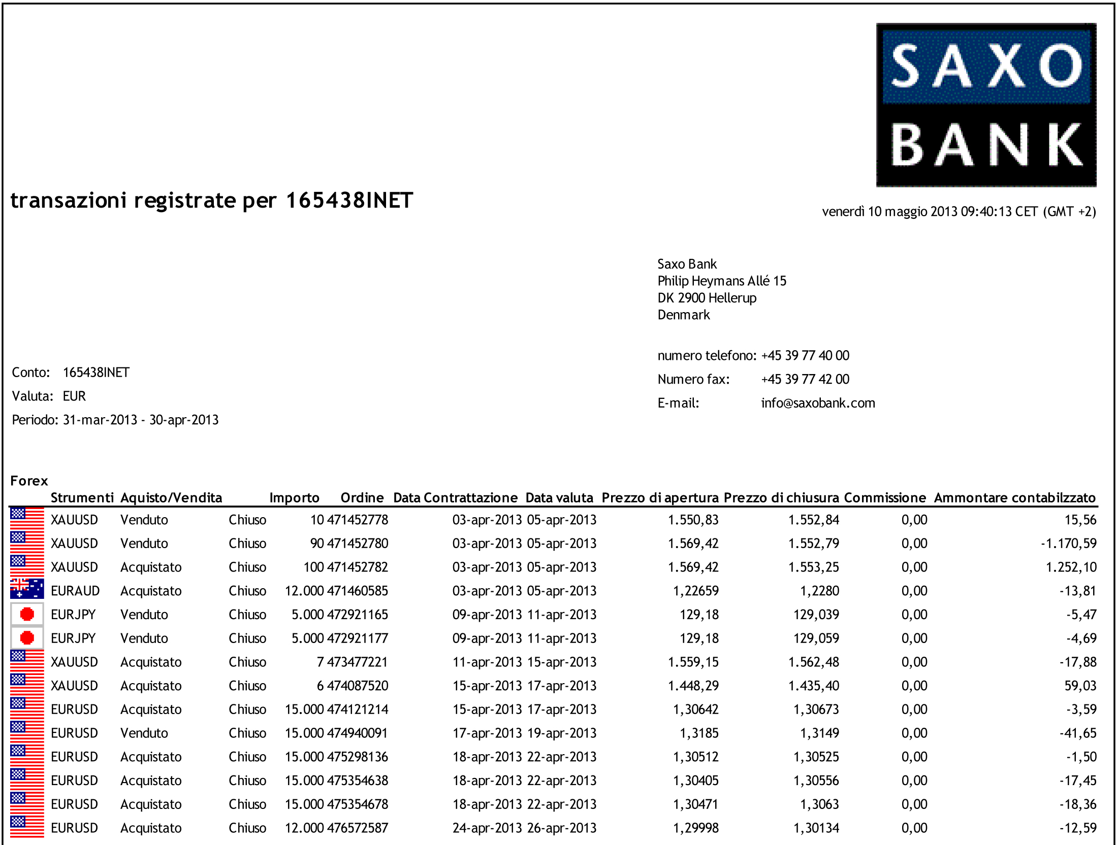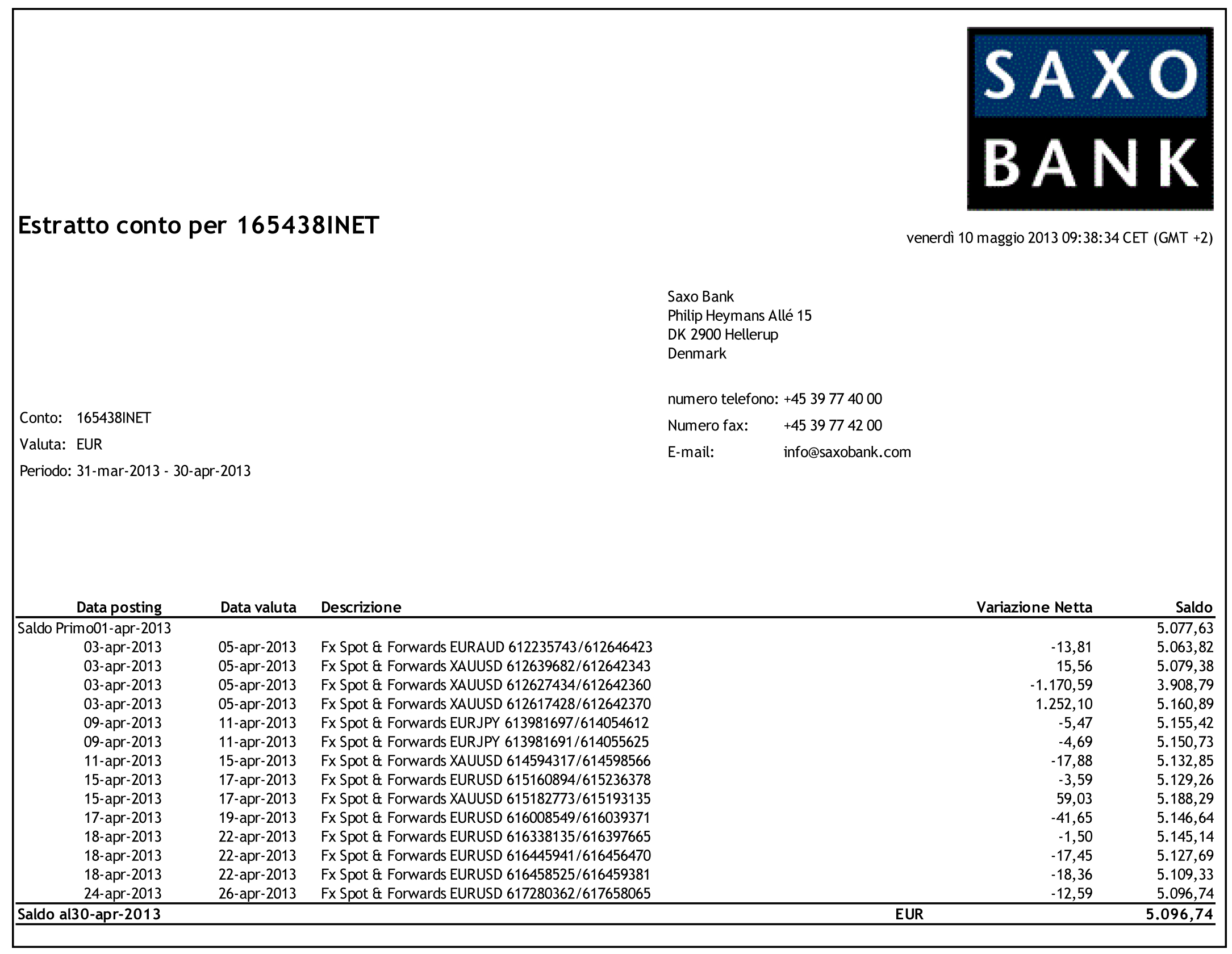 Il mese di aprile si è chiuso con un leggero profitto per il servizio segnalidiforex.it con un saldo attivo dello 0,38% sul conto reale Saxo Bank su cui vengono eseguiti i segnali.