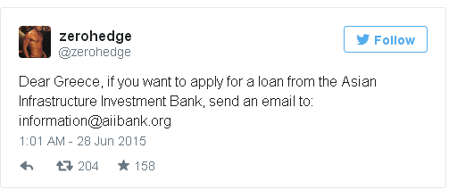 Cara Grecia, se vuoi fare richiesta per un prestito dall’Asian Infrastracture Investment Bank, invia un’email a: [email protected].