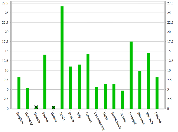 Di questi, oltre tre milioni e mezzo sono giovani, la disoccupazione giovanile ha infatti superato il 24% nell’Eurozona e i numeri dei singoli paesi sono a dir poco spaventosi.