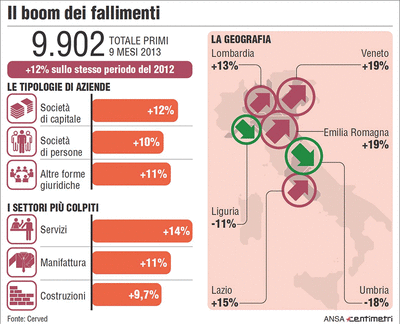Nei primi 9 mesi del 2013 si è registrato un vero e proprio boom di fallimenti.
