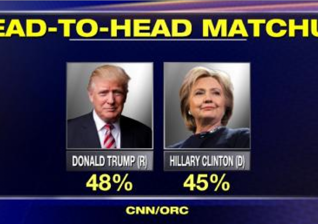 Elezioni USA 2016: Donald Trump sorpassa Hillary Clinton nei sondaggi. Per la prima volta da settembre 2015 il candidato repubblicano è avanti all’ex First Lady nei sondaggi sulle presidenziali americane. Stando alle ultime rilevazioni CNN sulle presidenziali USA, infatti, Trump è al 48% contro il 45% della rivale democratica.