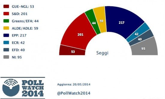 Gli ultimi sondaggi effettuati da PoolWatch2014, e risalenti a ieri, incorona il PPE, il gruppo formato dai popolari che in Italia raccoglie Forza Italia, Nuovo Centrodestra, Unione di Centro, Südtiroler Volkspartei, l’Udeur, i Popolari di Mario Mauro e Futuro e Libertà.