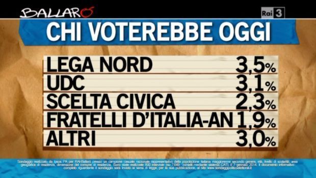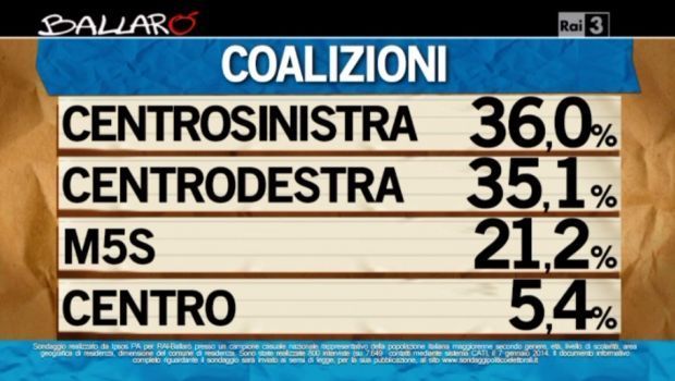 Ma andiamo a vedere nel dettaglio i risultati ottenuti da IPSOS e presentati ieri dalla trasmissione televisiva di Rai 3, Ballarò.
